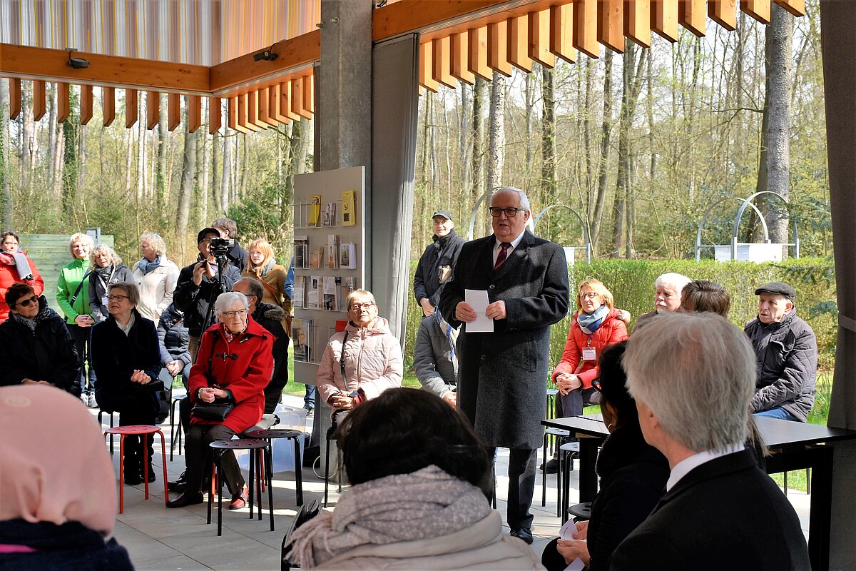 Nach einer ausführlichen Begrüßung der Anwesenden durch Uschi Stehmann sprach der stellvertretende Landrat des Kreises Paderborn, Vincenz Heggen in seinen Begrüßungsworten davon, dass er sich mit der Definition "Saison" beschäftigt hätte. Saison wird als wichtigster Zeitabschnitt innerhalb eines Jahres, in dem etwas Bestimmtes am meisten vorhanden ist oder am häufigsten stattfindet, in dem die stärksten Aktivitäten entfaltet werden, beschrieben. Das trifft auch auf den GlaubensGarten zu, so Heggen. Er wünschte dem Projekt eine lebhafte und erfolgreiche Saison 2019.