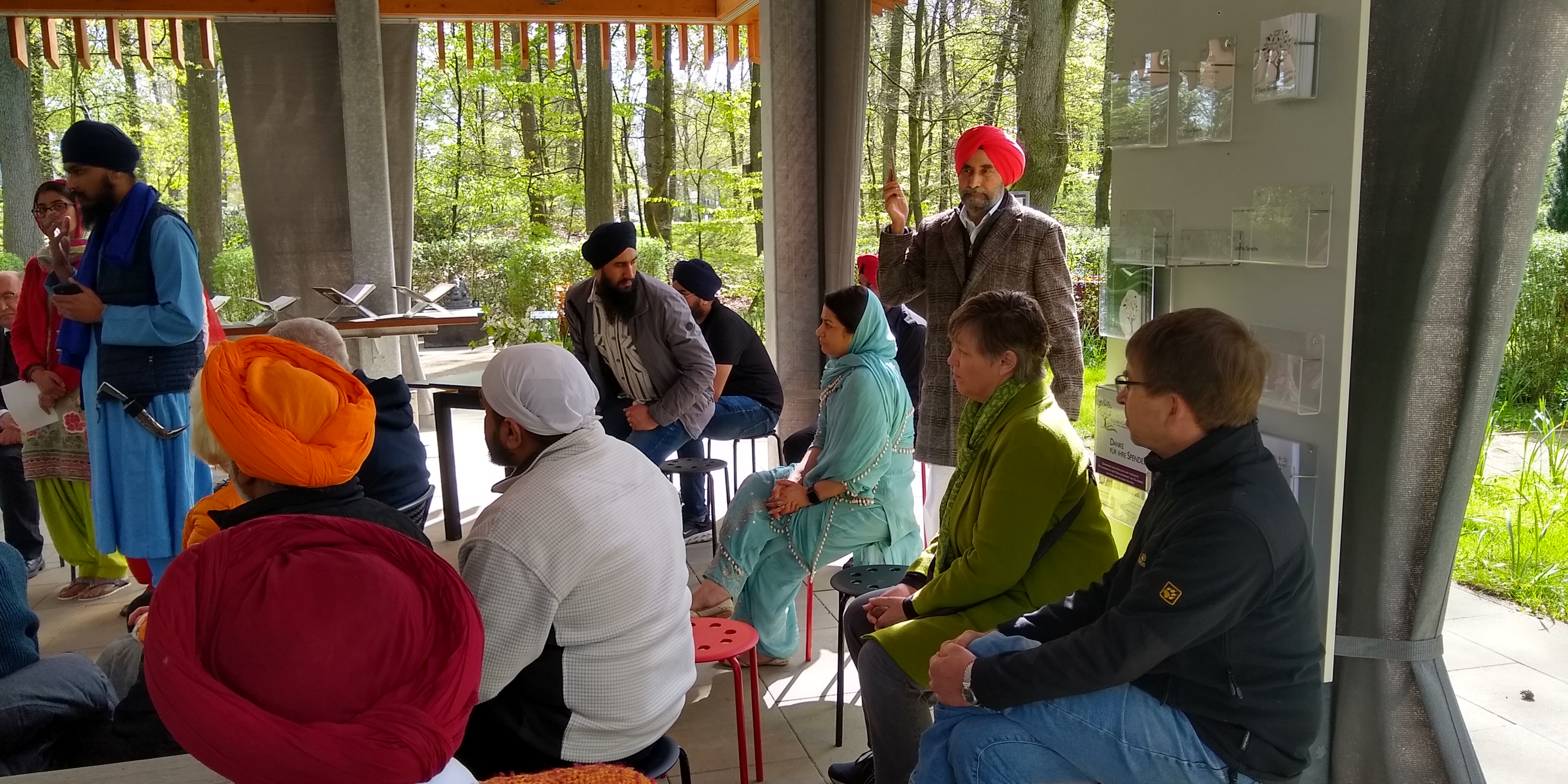 Für die Gemeinde der Sikhs war dieser Tag ein Feiertag Baisakhi (Vaisakh)*; sie verbanden die Gelegenheit ihres Feiertages mit dem der Neu-Eröffnung des GlaubensGartens. Hierbei erläuterten sie den anderen Teilnehmern ihren Glauben und dessen Einfluss auf ihr tägliches Leben